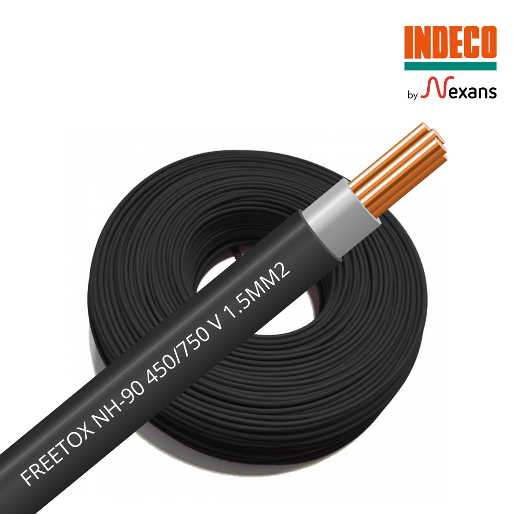 Rollo de cable libre de halógeno NH-90 INDECO 1.5MM2 color negro, 100 metros